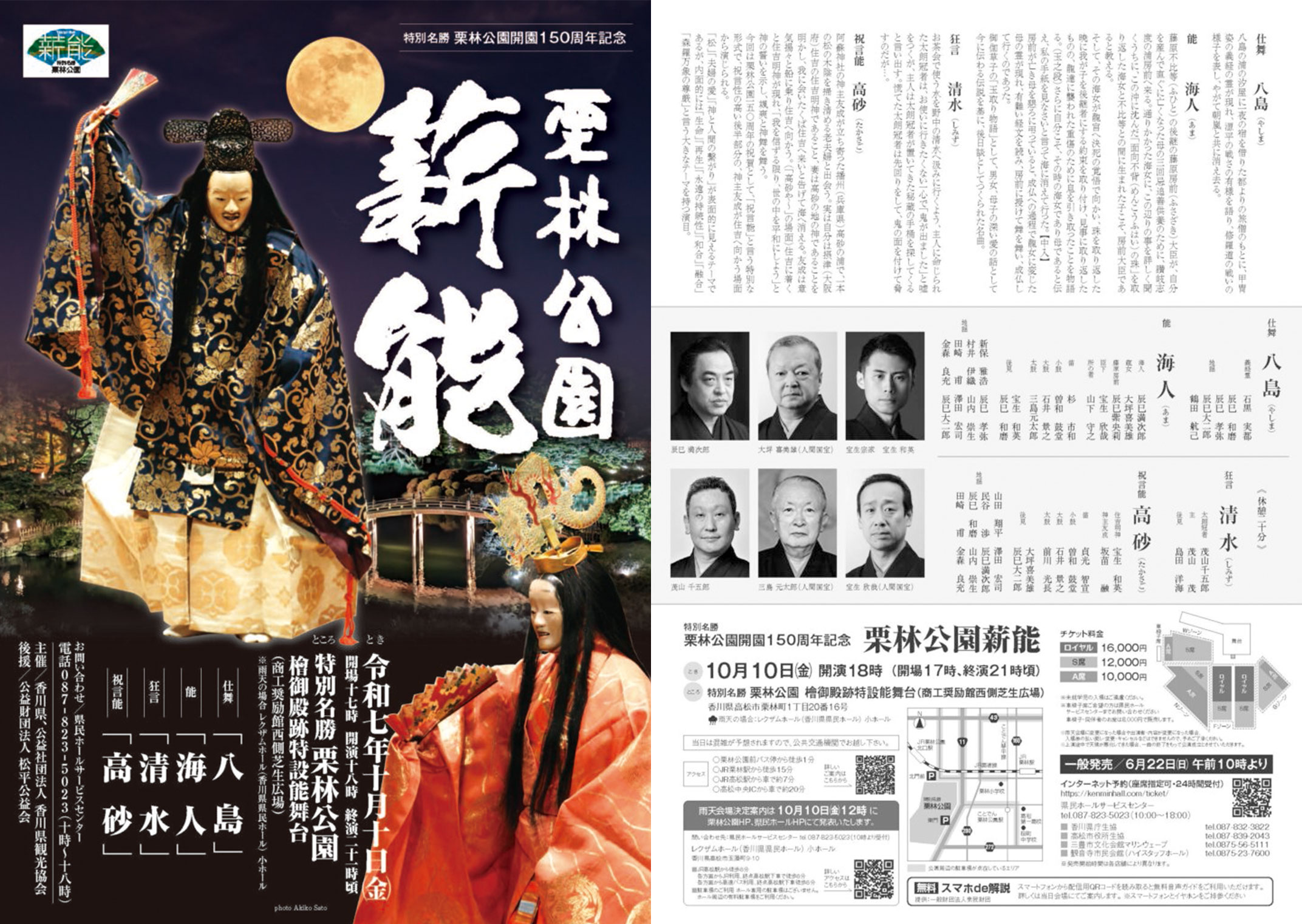 2025年10月10日(金)18時~ 「栗林公園薪能」(栗林公園檜御殿跡特設能舞台)